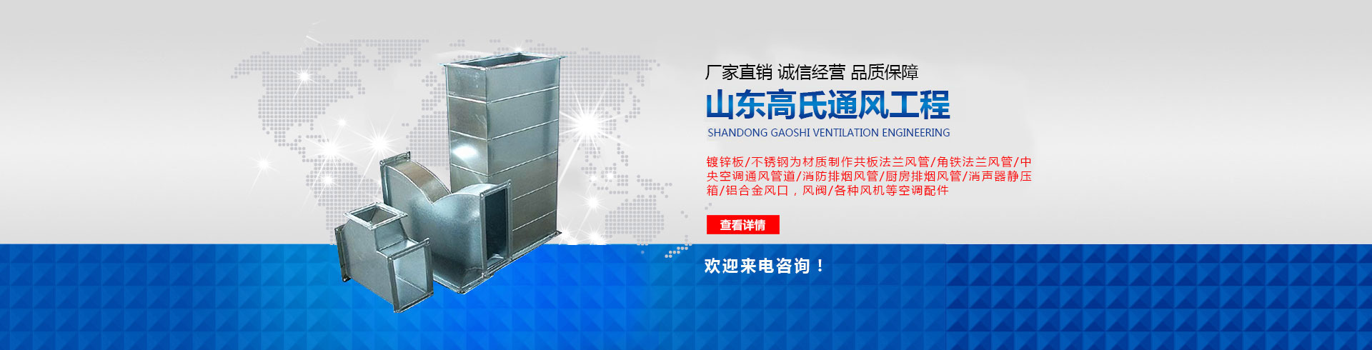山東高氏通風(fēng)管道工程有限公司主要經(jīng)營通風(fēng)管,酒店廚房排煙罩酒、黑白鐵加工已有多年,主要從事通風(fēng)管道設(shè)計(jì)、制作、安裝為一體的企業(yè),風(fēng)雨中我們在濟(jì)南的通風(fēng)管道行業(yè)深受客戶的信賴,公司成立之初即確定一個(gè)高起點(diǎn),公司擁有專用通風(fēng)管生產(chǎn)線,各種設(shè)備齊全。 公司產(chǎn)品主要有,以鍍鋅板、不銹鋼為材質(zhì)制作共板法蘭風(fēng)管,角鐵法蘭風(fēng)管,空調(diào)通風(fēng)管道,消防排煙風(fēng)管,廚房排煙風(fēng)管,消聲器,靜壓箱,鋁合金風(fēng)口,風(fēng)閥,各種風(fēng)機(jī),等空調(diào)配件。 公司擁有高素質(zhì)管理人員,業(yè)務(wù)素質(zhì)高精、管理能力強(qiáng),展望未來,任重而道遠(yuǎn),我們愿與各業(yè)同仁一道,相互進(jìn)步,共同發(fā)展,服務(wù)回饋社會,...